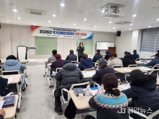 정안뉴스 김재홍 기자 | 진주시는 6일 농업기술센터 농업인교육강의실에서 먹거리통합지원센터의 출하농가 111명을 대상으로 ‘2026년도 먹거리통합지원센터 운영 설명회’를 개최했다.