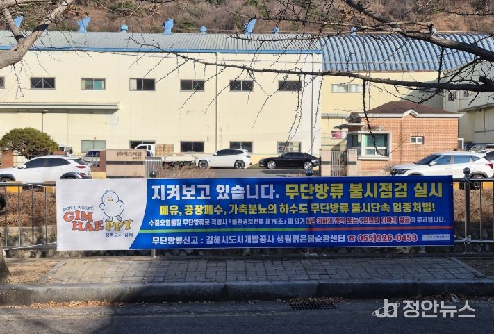정안뉴스 김재홍 기자 | 김해시도시개발공사 생림맑은물순환센터는 폐수 무단방류로 인한 수처리 시설 운영 차질을 예방하고, 사업장들의 환경 인식을 높이기 위해 지난 4일 폐수 무단방류 방지 현수막 설치를 완료했다고 밝혔다.