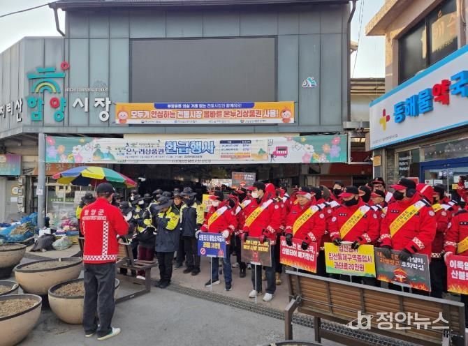 정안뉴스 김재홍 기자 | 함양군은 봄철 영농 활동과 등산객 증가, 건조한 날씨와 강풍특보 등으로 산불 발생 위험이 커짐에 따라 지난 2월 7일 지리산함양시장 일원에서 경상남도 동시 산불예방 캠페인을 진행했다.