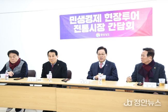 정안뉴스 김재홍 기자 | 경상남도는 설 명절을 앞두고 9일 양산 남부시장을 방문해 성수품 가격과 수급 상황을 확인하고, 전통시장 상인회 관계자들과 간담회를 열어 현장 의견을 청취했다.
