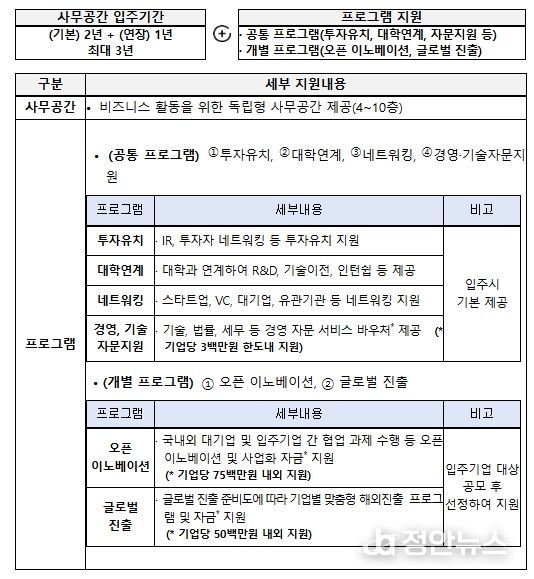 정안뉴스 안정주 기자 | 중소벤처기업부와 창업진흥원은 9일 글로벌 스타트업의 성장을 종합적으로 지원하는 신규 창업 인프라인 ‘K-StartHub’의 신규 개관을 앞두고 첫 입주기업을 모집한다고 밝혔다.