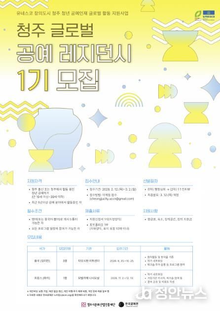 정안뉴스 황은경 기자 | 유네스코 공예 창의도시 청주가 글로벌 레지던시 사업의 닻을 올린다.