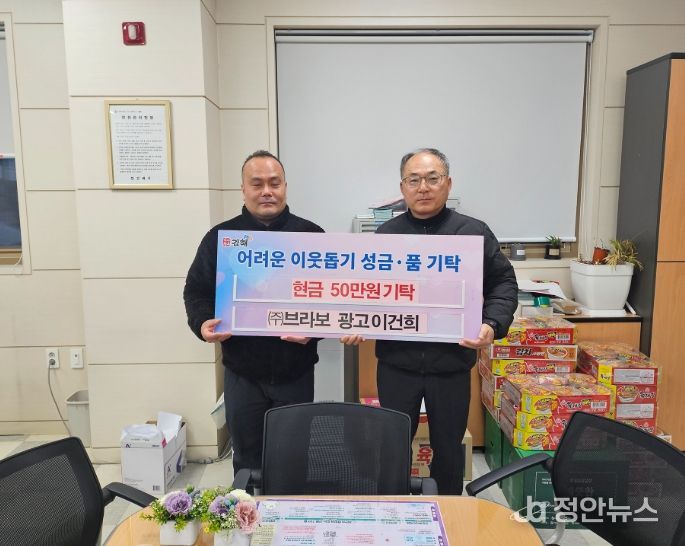 정안뉴스 김재홍 기자 | 김해시 장유2동 행정복지센터는 지난 10일, 관내 광고대행사인 주식회사 브라보와 음식점 ‘산까치산장’을 운영하는 이건희 대표가 어려운 이웃을 위해 성금 50만 원을 기탁했다고 밝혔다.