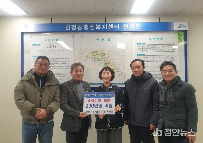 정안뉴스 안정주 기자 | 평택 남부유통상가 번영회는 지난 10일 지역사회 나눔 실천의 하나로 취약계층 학생들을 위한 장학금 2백만 원을 지원했다고 밝혔다.