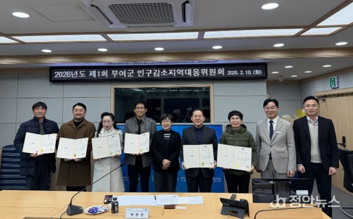정안뉴스 황도연 기자 | 부여군은 군청 재난종합상황실에서 '2026년도 제1회 부여군 인구감소지역대응위원회'를 개최하고, 위원 위촉과 함께 인구감소지역대응 시행계획(안)을 심의·의결했다고 12일 밝혔다.