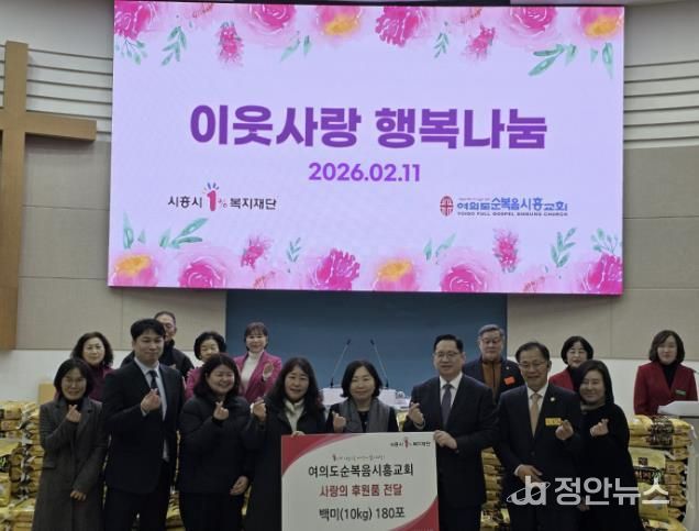 윤병기 정왕1동장은 “설 명절을 앞두고 지역의 어려운 이웃을 위해 뜻깊은 나눔을 전해주신 여의도순복음시흥교회에 깊이 감사드린다”라며 “기탁해 주신 백미는 도움이 필요한 가정에 정성껏 전달하겠다”라고 말했다.