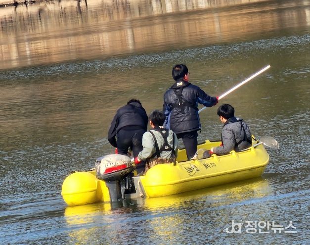 이들은 보트를 띄워 저수지 모퉁이 곳곳에 쌓인 쓰레기를 수거하고 둑 주변을 걸으며 쓰레기를 수거했다.