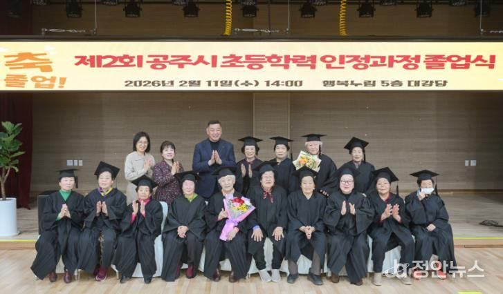 정안뉴스 황도연 기자 | 공주시는 지난 11일 행복누림 대강당에서 ‘제2회 공주시 성인문해교육 학력인정 초등과정 졸업식’을 열었다고 밝혔다.