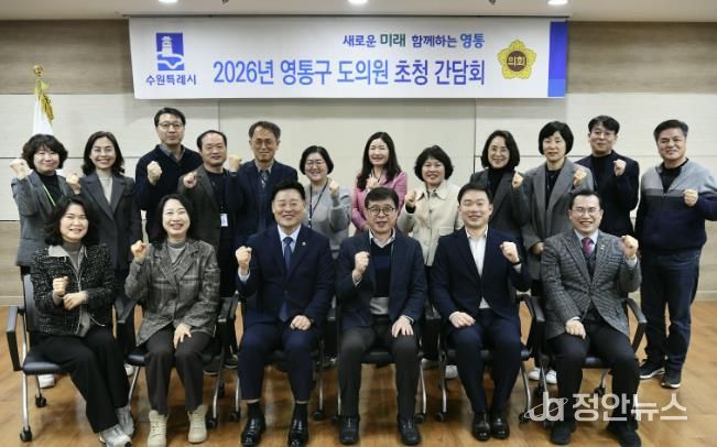 정안뉴스 안정주 기자 | 영통구는 지난 11일 구청 상황실에서 ‘2026년 상반기 도의원 간담회’를 열고, 구정 주요 현안과 핵심 사업의 추진 여건을 설명하며 도의회와의 협력 방안을 모색했다.