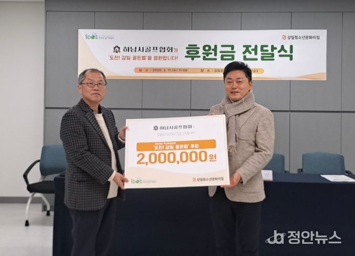 하남시골프협회 후원금 전달식은 2026년 2월 11일 오전 11시, 감일청소년문화의집에서 진행됐으며, 하남시골프협회 구교영 회장, 사단법인 인터넷꿈희망터 최준희 운영위원장, 감일청소년문화의집 김수진 관장이 참석해 후원의 뜻을 나눴다.