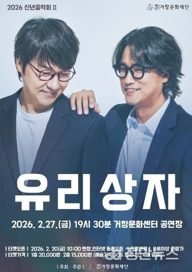 정안뉴스 김재홍 기자 | (재)거창문화재단(이사장 구인모 거창군수)은 오는 27일 오후 19시 30분에 거창문화센터 공연장에서 감성듀오 유리상자와 함께하는 ‘2026 신년음악회Ⅱ’를 개최한다.