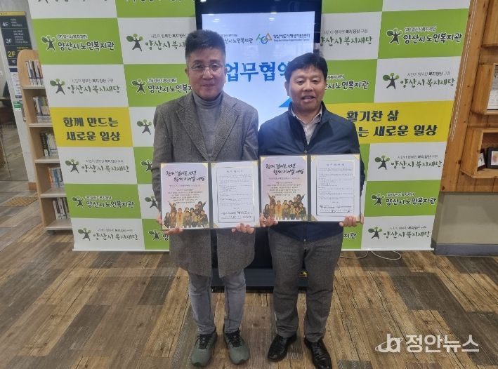 정안뉴스 김재홍 기자 | 양산시 도시재생지원센터(센터장 손재현)와 (재)양산시복지재단 양산시 노인복지관(관장 최종열)은 지난 20일 지역사회 발전과 노인복지 증진을 위한 상호 협력 체계를 구축하고자 업무협약을 체결했다고 밝혔다.