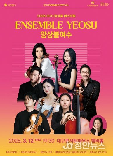 이번 무대에는 여수를 대표하는 연주단체 ‘앙상블여수’가 참여하며, 오는 3월 12일 오후 7시 30분 대구콘서트하우스 챔버홀에서 개최된다.