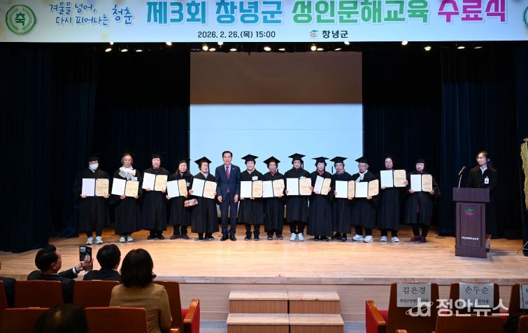 정안뉴스 김재홍 기자 | 창녕군은 26일 창녕문화예술회관에서 ‘제3회 창녕군 성인문해교육 수료식 및 시화전’을 개최했다.