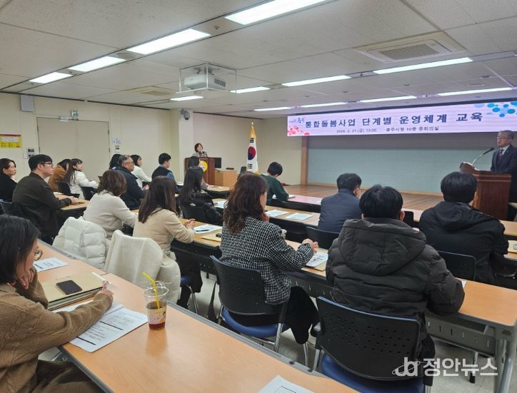 정안뉴스 황은경 기자 | 충주시는 오는 3월 27일 시행예정인'의료・요양 등 지역돌봄의 통합지원에 관한 법률'에 대비해 27일 시청 10층 중회의실에서 실무 교육을 진행했다고 밝혔다.