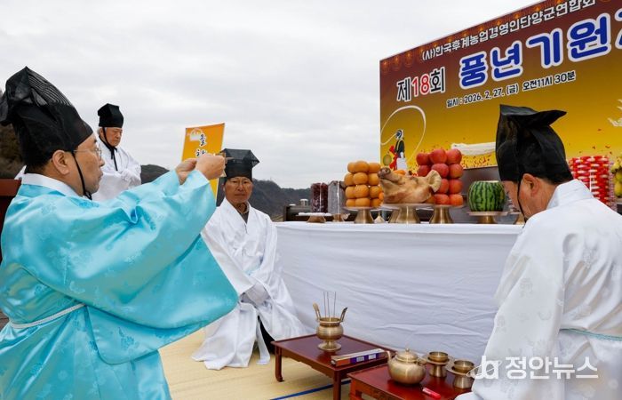풍년기원제는 초헌관 헌작과 축문 낭독 등 전통 제례 절차에 따라 엄숙하게 진행됐다. 농악 가락이 울려 퍼지자 참석자들은 두 손을 모으고 한 해 농사의 무탈과 풍요를 기원했다.