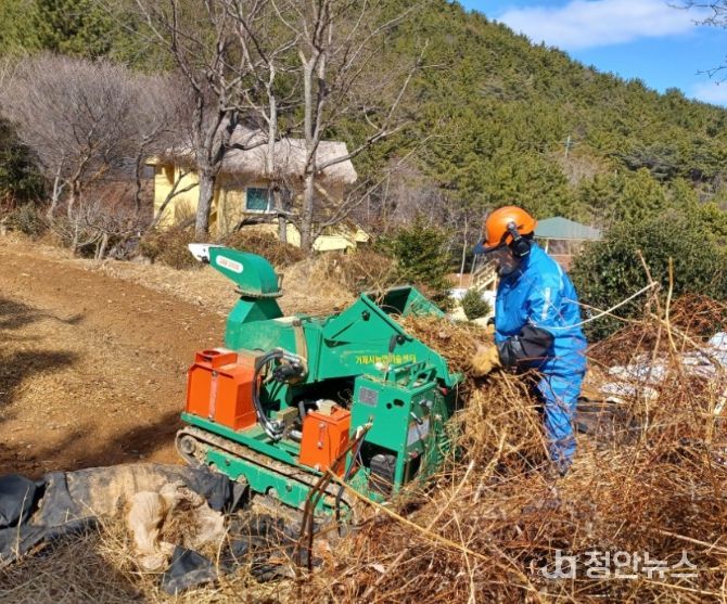 ‘영농부산물 안전처리 지원사업’은 과수잔가지, 고춧대, 깻대 등 영농부산물을 무료로 파쇄 처리해 농가의 부담을 덜고, 불법소각으로 인한 산불위험을 방지하고 환경오염을 예방하는 데 목적이 있다.
