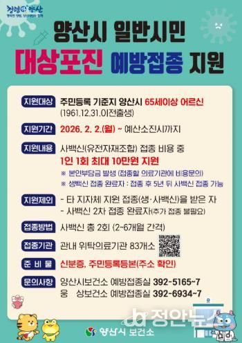 정안뉴스 김재홍 기자 | 양산시는 2026년부터 생애주기별 맞춤형 예방접종 지원을 확대 시행하며 시민 건강권 강화에 본격 나선다고 밝혔다.