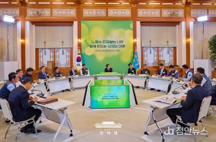 먼저 이 대통령은 모두발언을 통해 "우리 국민주권 정부는 노동 존중 사회를 위한 나름의 정책적 노력을, 최선을 다하고 있다"며 "일터에서 노동자들이 죽어가는 산업재해, 사망자를 줄이기 위해서 최선을 다하고 있는데 최근에 조금씩 성과들이 나는 것 같다"고 말했다.