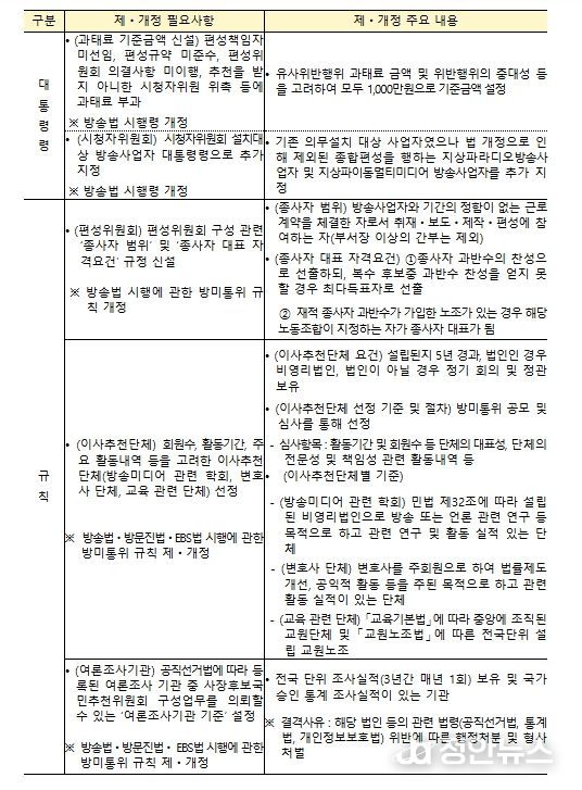 또한 방미통위 규칙 제․개정을 통해 편성위원회 구성과 관련된 종사자 범위 및 종사자 대표의 자격요건을 구체화했다.