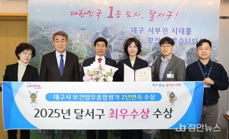 정안뉴스 안정주 기자 | 대구 달서구는 대구시가 주관한'2025년 보건업무종합평가'에서 달서구보건소가 최우수상을 수상했다고 12일 밝혔다.