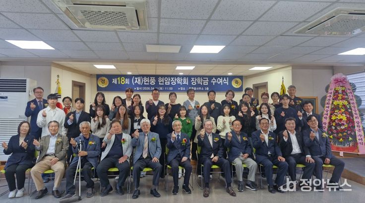 정안뉴스 안정주 기자 | 달성군 현풍현암장학회는 11일 현풍읍 행정복지센터에서 ‘제18회 현암장학회 장학금 수여식’을 열고 지역 인재들에게 장학금을 전달했다.