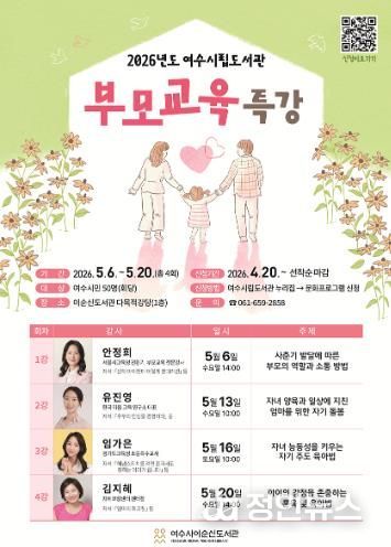 정안뉴스 안정주 기자 | 여수시립도서관은 가정의 달을 맞아 부모 역할의 이해와 올바른 자녀 양육에 도움을 주기 위해 ‘부모 교육 특강’을 운영한다.
