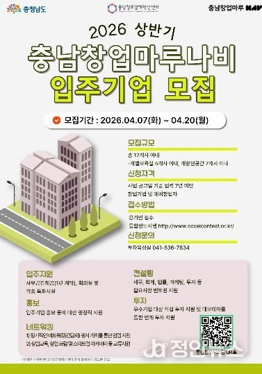 정안뉴스 안정주 기자 | (재)충남창조경제혁신센터는 이달 20일까지 2026년 충남창업마루나비 입주기업을 모집한다고 밝혔다.