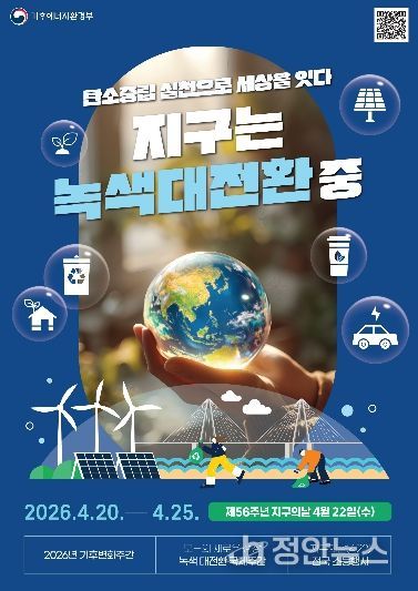 정안뉴스 안정주 기자 | 목포시는 제56주년 지구의 날(4월 22일)을 맞아 오는 20일부터 25일까지 ‘2026년 기후변화주간’을 운영하고, 탄소중립 인식 제고와 생활 속 실천문화 확산을 위한 다양한 행사를 추진한다고 밝혔다.