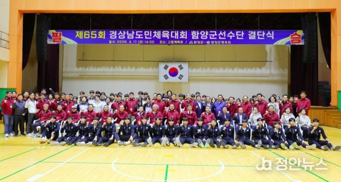 정안뉴스 김재홍 기자 | 함양군은 제65회 경상남도민체육대회 출전을 앞두고 4월 17일 오후 2시 함양군 고운체육관에서 선수단 결단식을 개최했다.