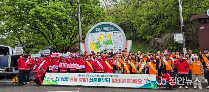 정안뉴스 김재홍 기자 | 함안군은 지난 18일 입곡군립공원 일원에서 경남도와 관계기관(함안소방서, 함안전력지사, 함안군산림조합) 등 100여 명이 참여한 가운데 ‘함안군·경남도·관계기관 합동 산불 예방 캠페인’을 실시했다고 밝혔다.