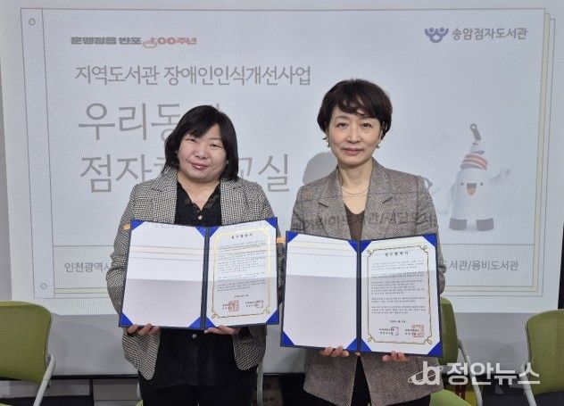 정안뉴스 안정주 기자 | 부평구립 부개어린이도서관은 지난 17일 송암점자도서관과 ‘장애인과 비장애인이 함께하는 독서환경 조성’을 위한 업무협약(MOU)을 체결했다.