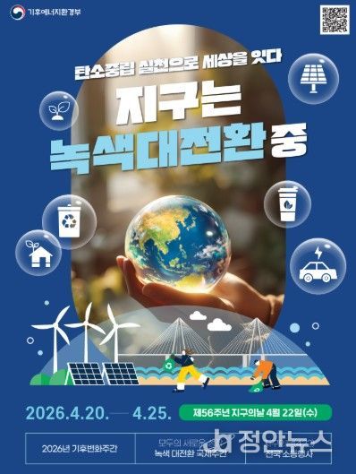 정안뉴스 김재홍 기자 | 함양군은 ‘제56주년 지구의 날(4월 22일)’을 맞아 4월 20일부터 24일까지 5일간 ‘2026년 제18회 기후변화주간’을 운영하고, 온실가스 감축과 에너지 절약 실천 확산을 위한 소등 행사를 추진한다고 밝혔다.