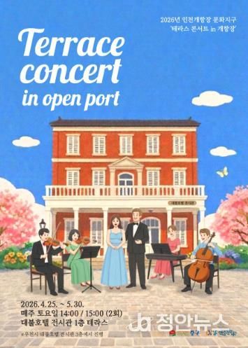 정안뉴스 안정주 기자 | (재)인천중구문화재단은 오는 4월 25일부터 5월 30일까지 매주 토요일마다 인천 개항장 문화지구 내 대불호텔 전시관 테라스에서 '테라스 콘서트 in 개항장'’을 운영한다고 밝혔다.