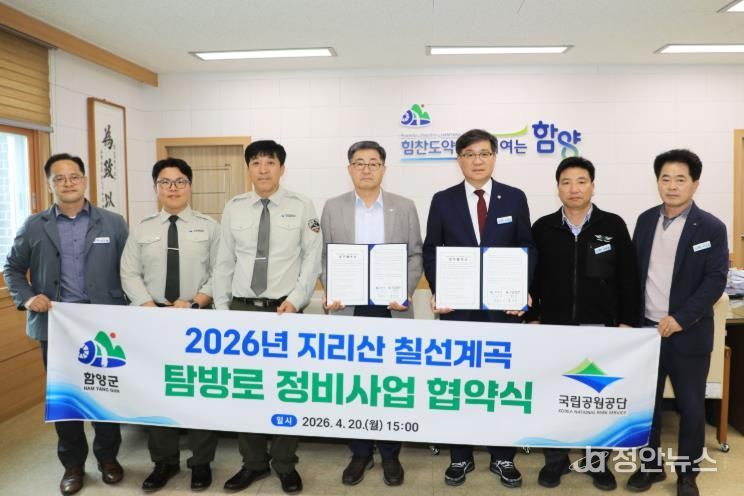 이번 협약은 함양군과 지리산국립공원경남사무소가 상호 협력체계를 구축해 칠선계곡 탐방로의 안전성과 이용 편의를 높이고, 지속 가능한 탐방환경을 조성하기 위해 마련됐다.