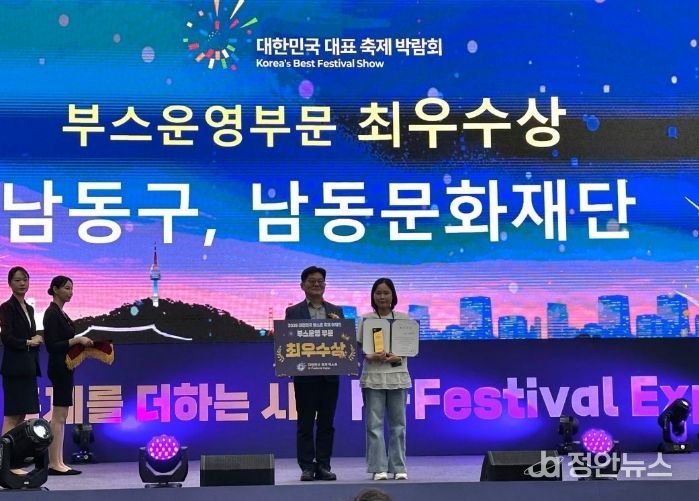 정안뉴스 안정주 기자 | 인천 남동문화재단은 지난 17~19일 수원컨벤션센터에서 열린 제6회 대한민국 축제 엑스포에서 제26회 소래포구축제 홍보로 부스 운영 부문 최우수상을 받았다고 23일 밝혔다.