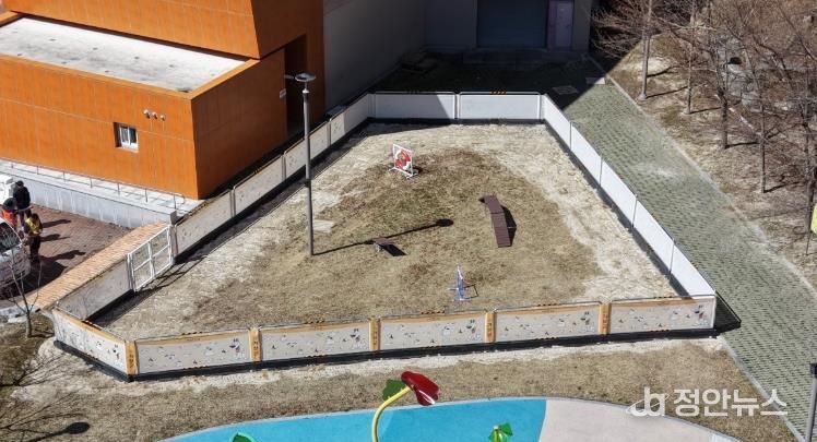 이번에 조성된 놀이터는 반려동물이 목줄 없이 자유롭게 뛰어놀 수 있도록 안전성과 편의성을 고려해 조성됐으며, 시소·허들 등 다양한 반려동물 놀이기구를 함께 배치해 반려동물의 활동성과 놀이 만족도를 높인 것이 특징이다.