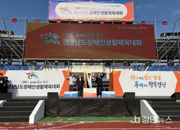 정안뉴스 김재홍 기자 | 창원특례시는 지난 4월 23일과 24일 양일간 함안군과 창녕군 일원에서 열린 ‘제29회 경상남도장애인생활체육대회’ 단체전에서 종합우승을 차지했다고 밝혔다.