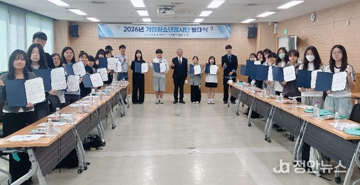 정안뉴스 안정주 기자 | 인천 계양구자원봉사센터는 25일 구청 신비홀에서 지역 내 중·고등학생 24명이 참여한 가운데 ‘2026 계양청소년봉사단’ 발대식을 개최했다.