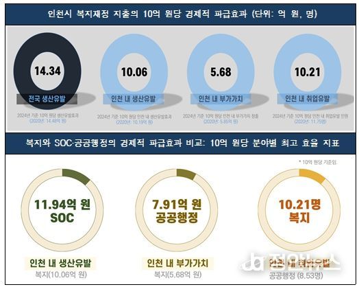 특히 취업유발효과의 82.3%가 인천 지역에서 발생해, 복지재정이 지역 내 고용창출의 중요한 동력으로 작동하고 있음을 확인했다.