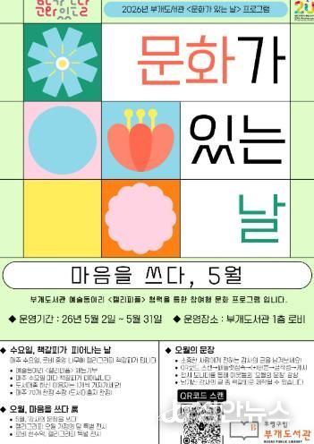 정안뉴스 안정주 기자 | 부평구 부개도서관은 5월 가정의 달 특별 프로그램 ‘마음을 쓰다, 5월’을 운영한다.