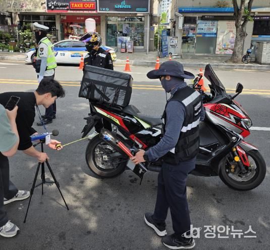 시는 지난 29일 소음 민원이 잦은 신부동 일원에서 천안동남경찰서, 한국교통안전공단과 함께 오토바이 소음 및 불법 개조를 집중 단속했다고 30일 밝혔다.