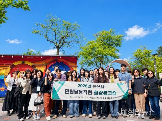 정안뉴스 안정주 기자 | 논산시는 지난 4월 28일 예산군 일원에서 시청 및 읍·면·동 민원 담당 직원을 대상으로 ‘2026년 민원담당 직원 힐링워크숍’을 개최했다.