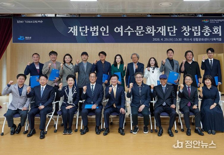 정안뉴스 안정주 기자 | 여수시는 지난 29일 여수시 생활문화센터 다목적홀에서 ‘재단법인 여수문화재단’ 설립을 위한 창립총회를 개최했다고 밝혔다.