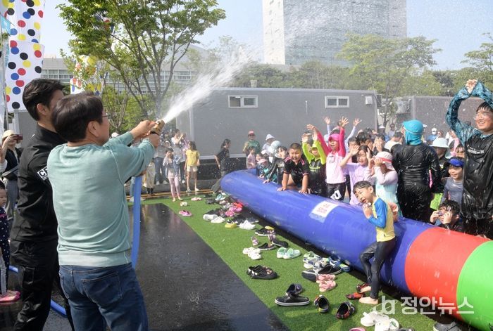 이날 최고 인기는 ‘웰컴 투 워터월드’였다. 시청 앞은 어린이 놀이시설인 워터슬라이드를 설치, ‘워터월드’로 깜짝 변신했다. 흥겨운 음악과 무더위를 식히는 물줄기, 안전요원의 보호 아래 어린이들의 환호가 일대를 꽉 채웠다.