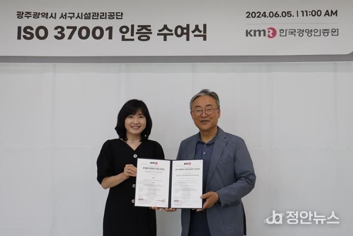 정안뉴스 박상욱 기자 | 광주광역시 서구시설관리공단은 한국경영인증원(KMR)으로부터 부패방지경영시스템 인증인 ‘ISO 37001’을 획득했다고 10일 밝혔다.