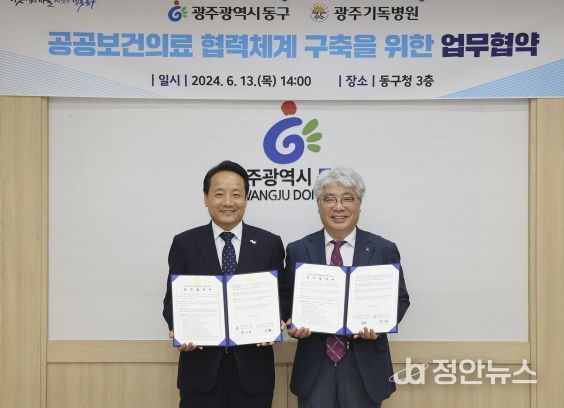 정안뉴스 박상욱 기자 | 광주 동구는 지난 13일 광주기독병원과 공공보건의료 협력체계 구축을 위한 업무협약을 체결했다고 밝혔다.