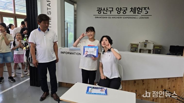 광산구 양궁체험장에서는 안산, 기보배 등 세계적 선수들을 지도한 김성은 감독에게 직접 양궁을 배우고, 활을 쏘는 체험을 즐겼다.