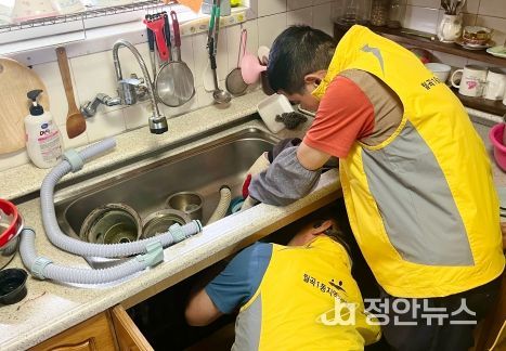 월곡1동 지사협 위원들은 이날 지역 내 혼자 사는 어르신 40세대를 방문, 오랫동안 청소하지 않아 음식물 찌꺼기가 쌓이고 곰팡이가 핀 싱크대 배수관을 직접 청소하고 배수관을 교체했다.