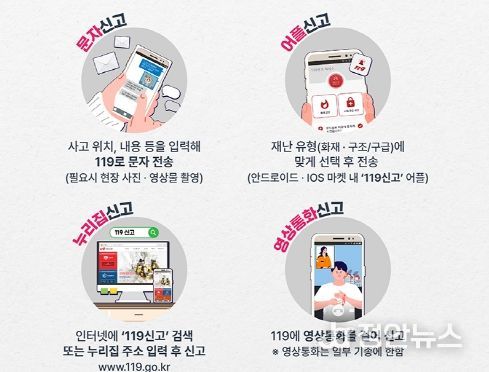 다매체 119신고서비스는 재난 발생 시 음성·영상통화 외에도 문자나 119신고 어플 등 다양한 방법으로 신고할 수 있는 서비스다.